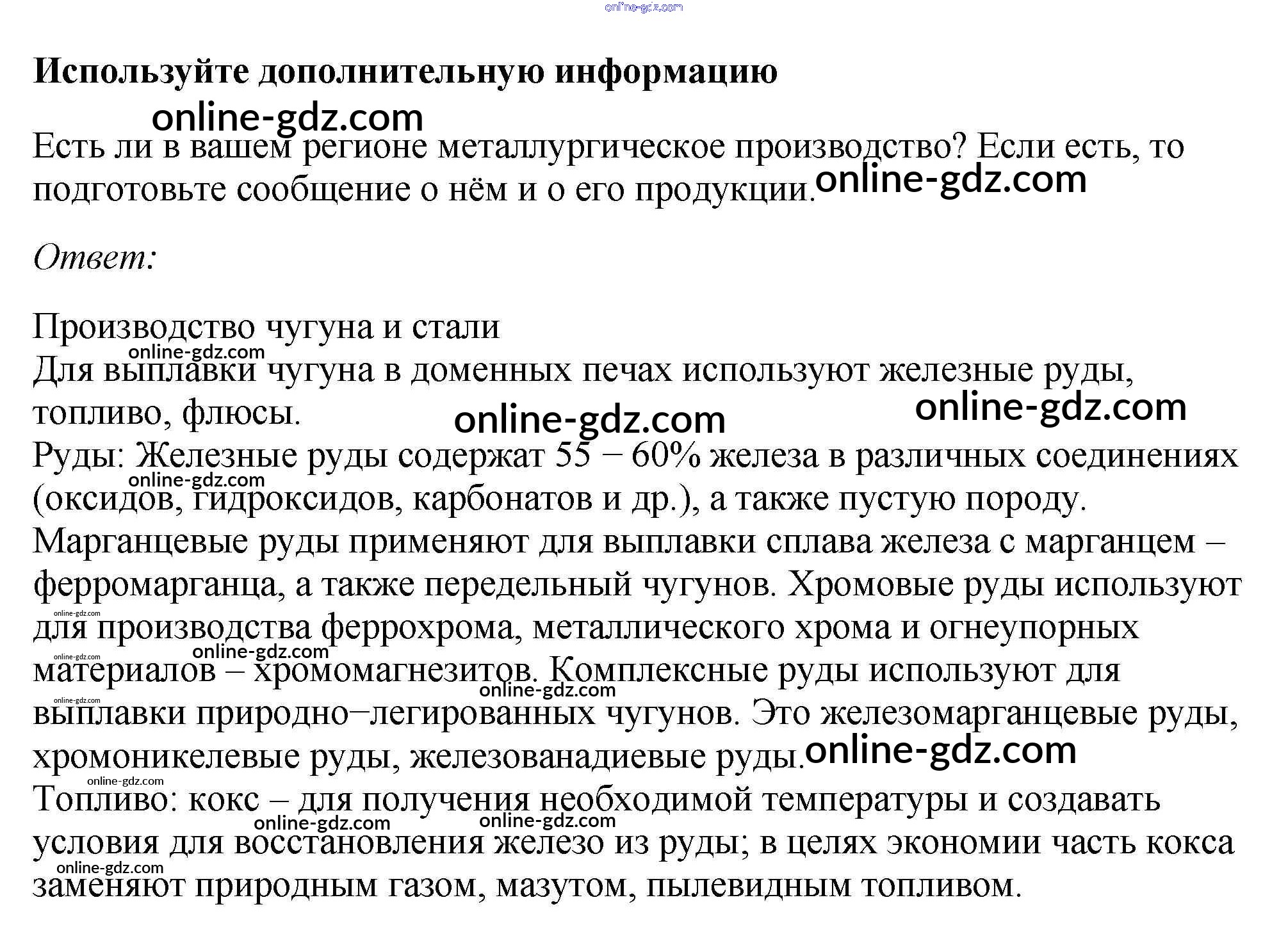 Готовые домашние задания по Химии за 9 класс Учебник Габриелян, Остроумов 2021 - Используйте дополнительную информацию §36. Металлы в природе. Понятие о металлургии 1