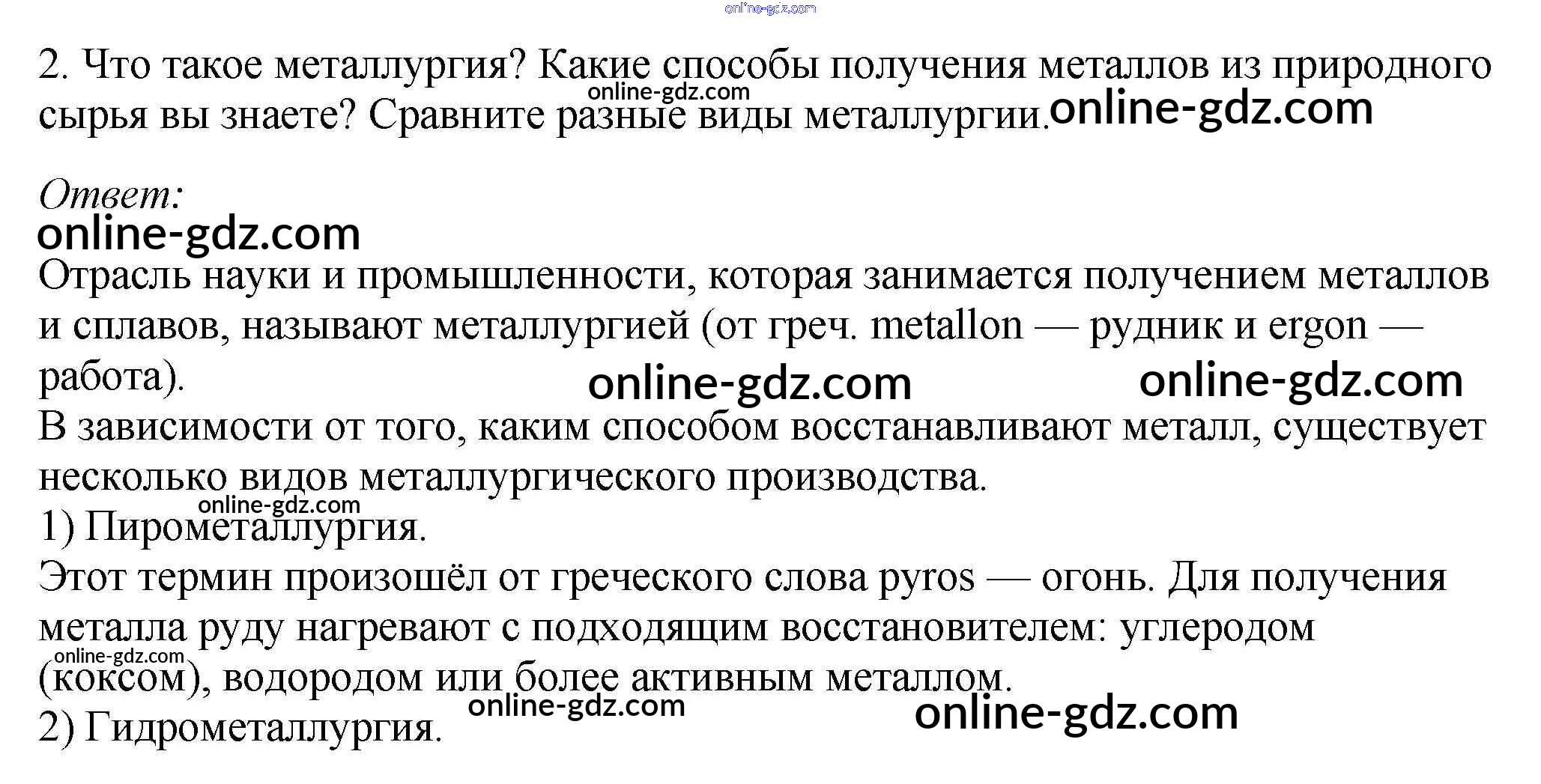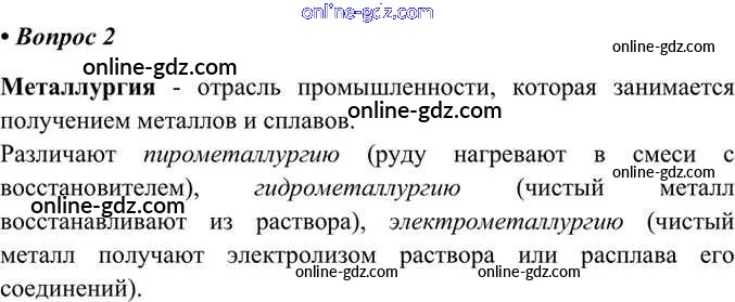Готовые домашние задания по Химии за 9 класс Учебник Габриелян, Остроумов 2021 - §36. Металлы в природе. Понятие о металлургии 2
