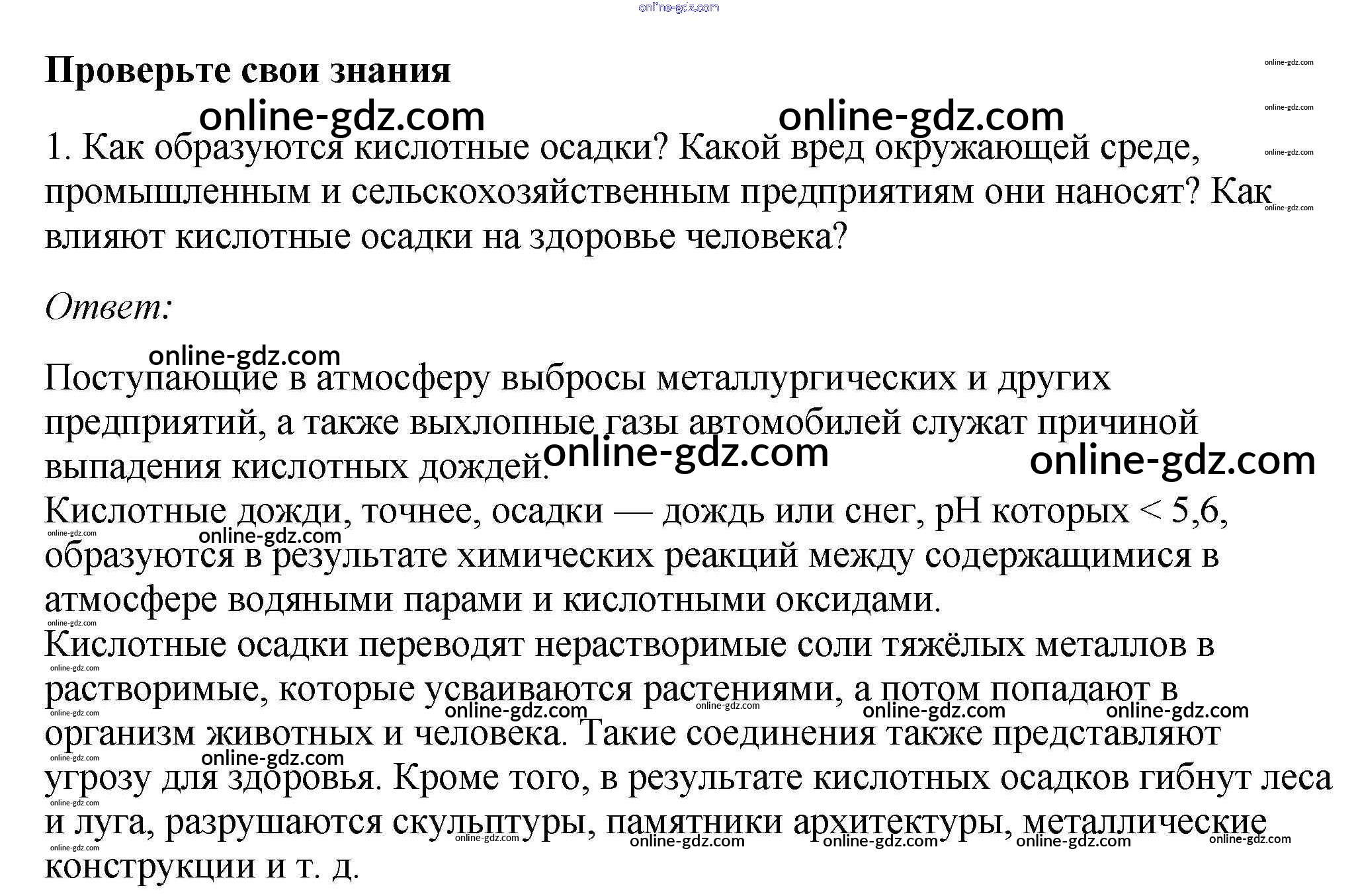 Готовые домашние задания по Химии за 9 класс Учебник Габриелян, Остроумов 2021 - §38. Охрана окружающей среды от химического загрязнения 1