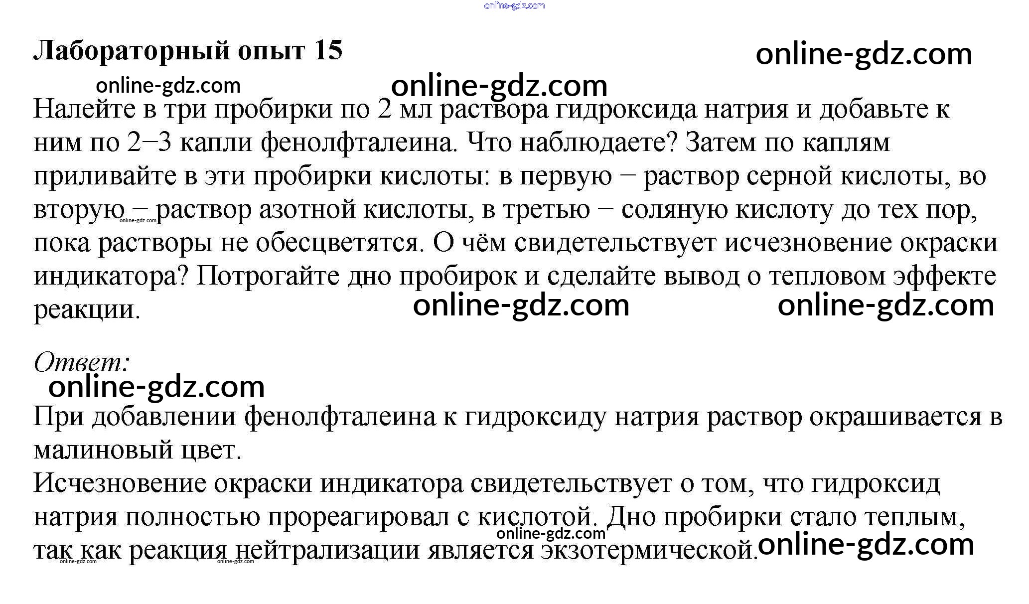 Готовые домашние задания по Химии за 9 класс Учебник Габриелян, Остроумов 2021 - Лабораторные опыты 15