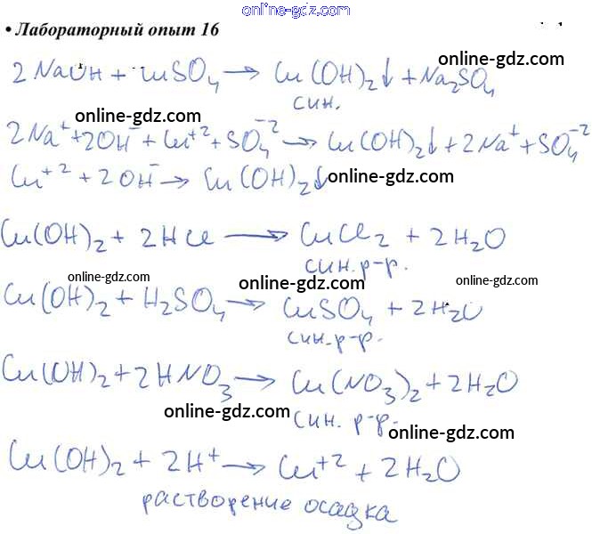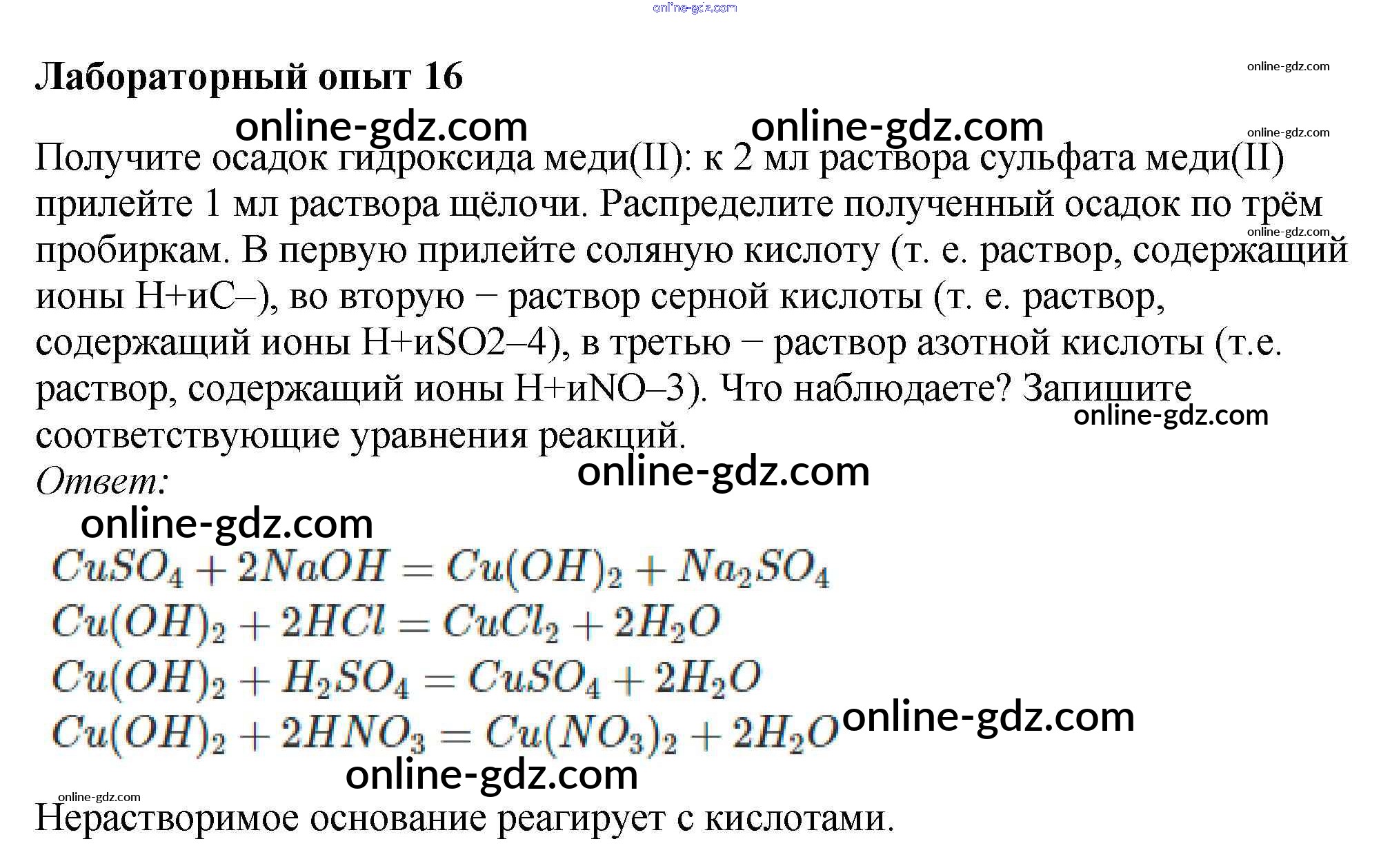 Готовые домашние задания по Химии за 9 класс Учебник Габриелян, Остроумов 2021 - Лабораторные опыты 16