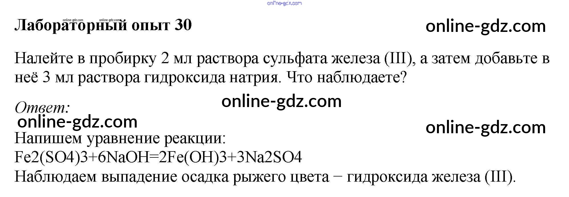 Готовые домашние задания по Химии за 9 класс Учебник Габриелян, Остроумов 2021 - Лабораторные опыты 30