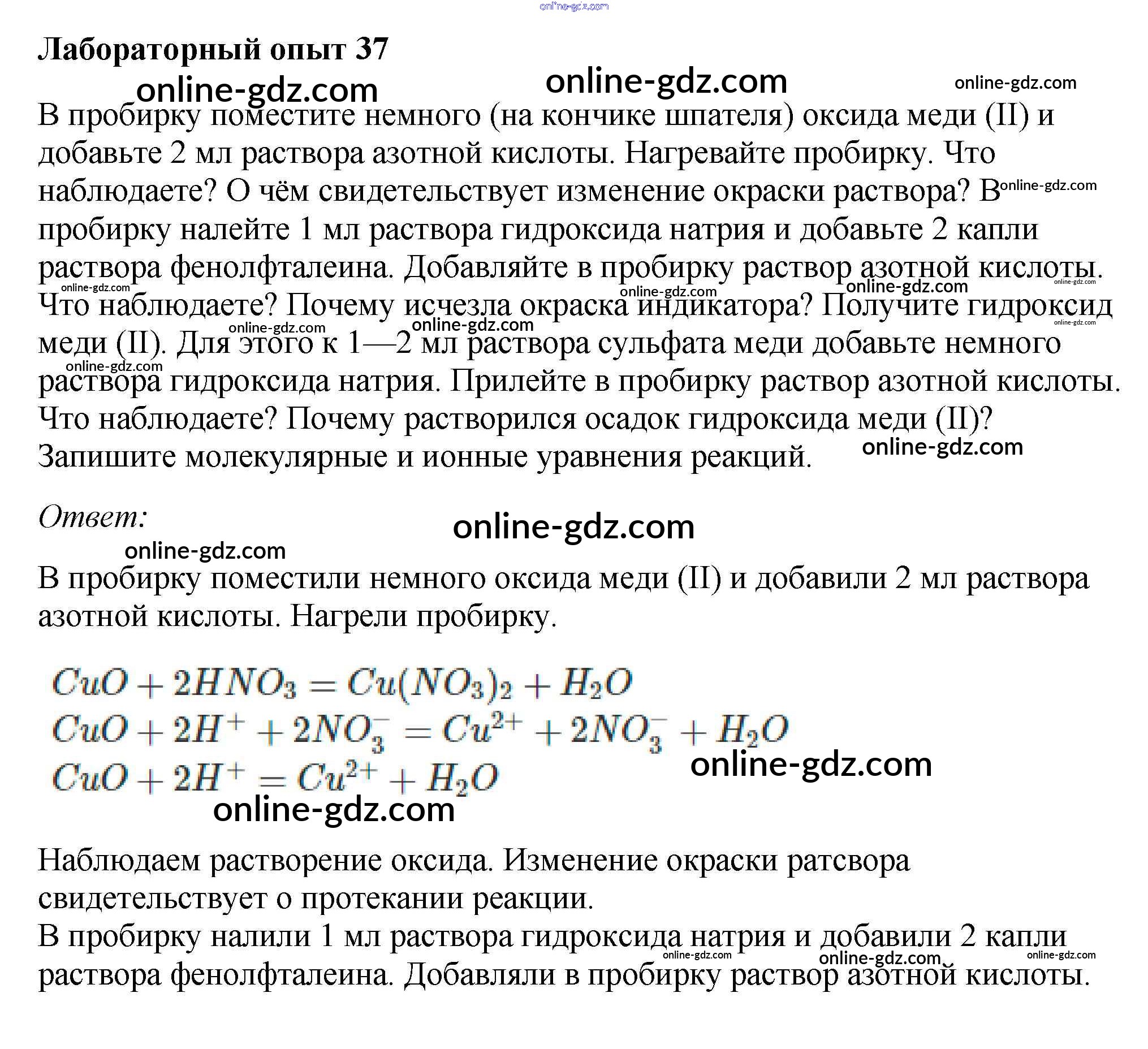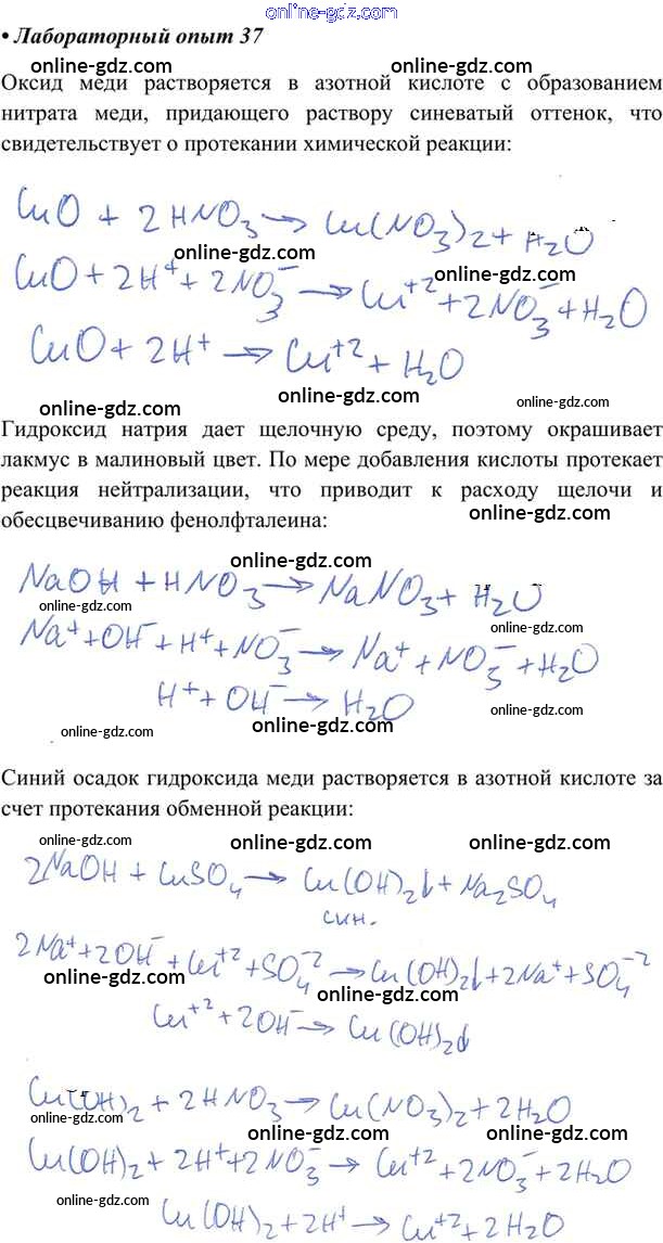 Готовые домашние задания по Химии за 9 класс Учебник Габриелян, Остроумов 2021 - Лабораторные опыты 37