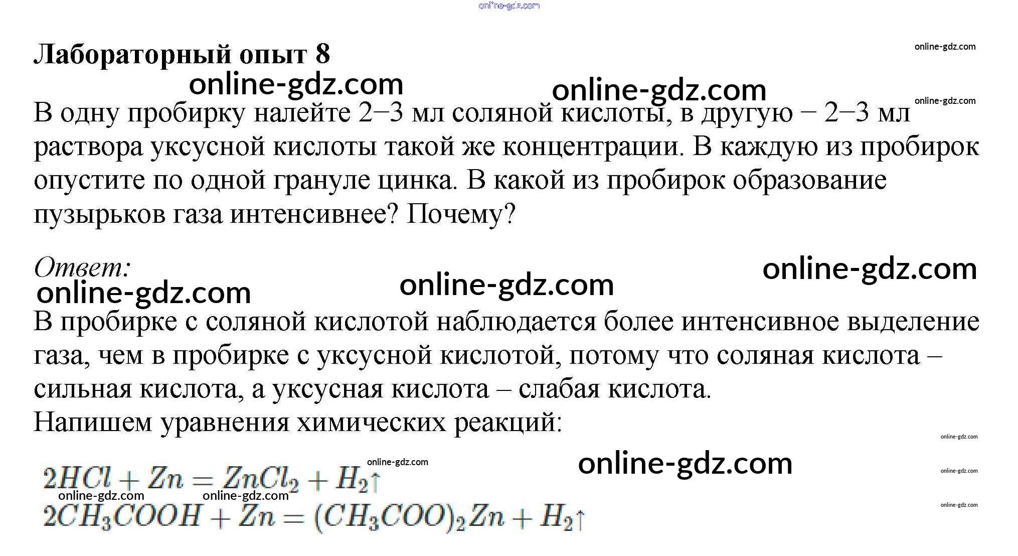 Готовые домашние задания по Химии за 9 класс Учебник Габриелян, Остроумов 2021 - Лабораторные опыты 8