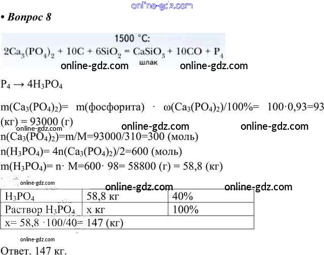 Готовые домашние задания по Химии за 9 класс Учебник Кузнецова, Титова Алгоритм успеха 2019 - Вопросы §31. Соединения фосфора 8