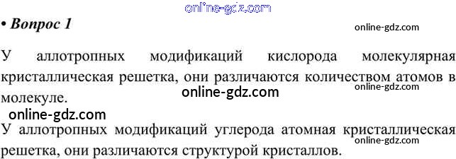 Готовые домашние задания по Химии за 9 класс Учебник Кузнецова, Титова Алгоритм успеха 2019 - Вопросы §33. Аллотропные модификации углерода 1
