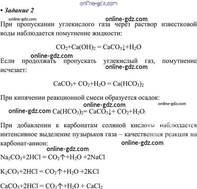 Готовые домашние задания по Химии за 9 класс Учебник Кузнецова, Титова Алгоритм успеха 2019 - Задания §36. Угольная кислота и её соли 2