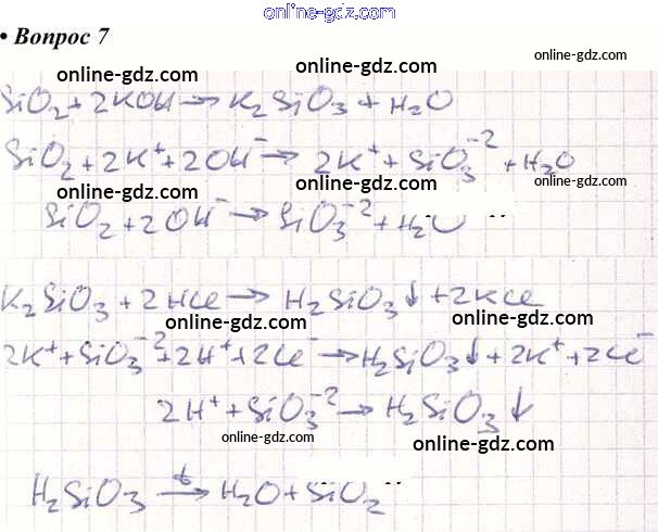 Готовые домашние задания по Химии за 9 класс Учебник Кузнецова, Титова Алгоритм успеха 2019 - Вопросы §37. Кремний и его свойства. Соединения кремния 7