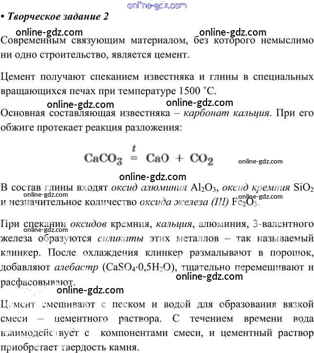 Готовые домашние задания по Химии за 9 класс Учебник Кузнецова, Титова Алгоритм успеха 2019 - Творческое задание §37. Кремний и его свойства. Соединения кремния 2
