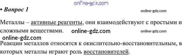 Готовые домашние задания по Химии за 9 класс Учебник Кузнецова, Титова Алгоритм успеха 2019 - Вопросы §39. Химические свойства металлов 1