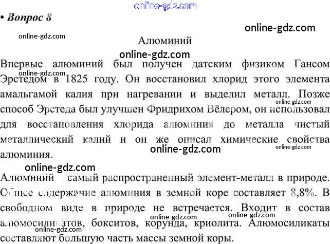 Готовые домашние задания по Химии за 9 класс Учебник Кузнецова, Титова Алгоритм успеха 2019 - Вопросы §39. Химические свойства металлов 8