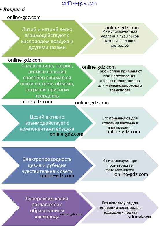 Готовые домашние задания по Химии за 9 класс Учебник Кузнецова, Титова Алгоритм успеха 2019 - Вопросы §41. Характеристика элементов IA-групиы Периодической системы и образуемых ими простых веществ 6