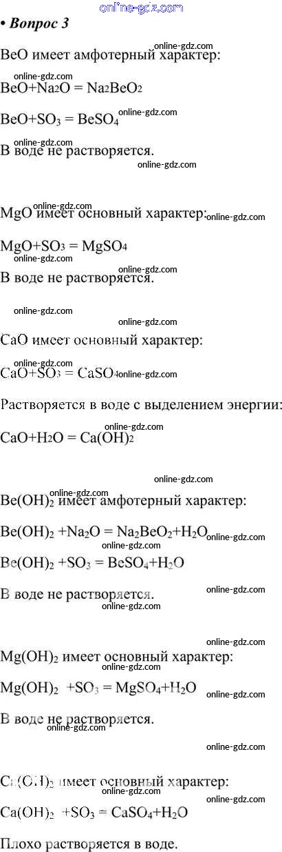 Готовые домашние задания по Химии за 9 класс Учебник Кузнецова, Титова Алгоритм успеха 2019 - Вопросы §42. Металлы IIА-группы Периодической системы Д.И. Менделеева и их важнейшие соединения 3