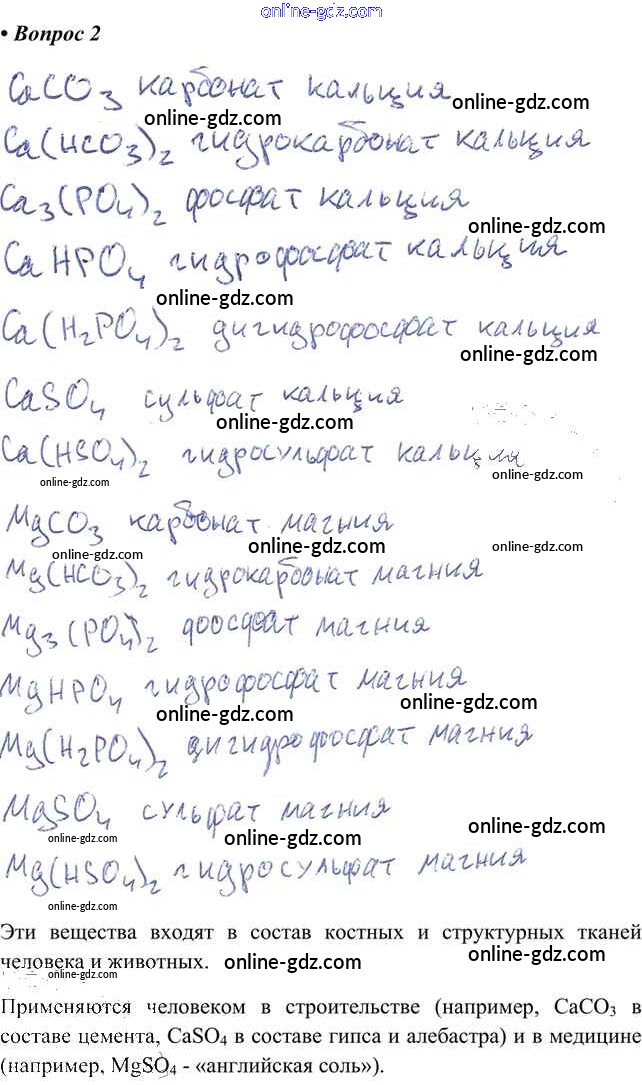 Готовые домашние задания по Химии за 9 класс Учебник Кузнецова, Титова Алгоритм успеха 2019 - Вопросы §43. Распространение и роль металлов IIA-группы в природе 2