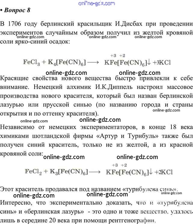 Готовые домашние задания по Химии за 9 класс Учебник Кузнецова, Титова Алгоритм успеха 2019 - Вопросы §45. Железо и его важнейшие соединения 8