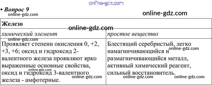Готовые домашние задания по Химии за 9 класс Учебник Кузнецова, Титова Алгоритм успеха 2019 - Вопросы §45. Железо и его важнейшие соединения 9