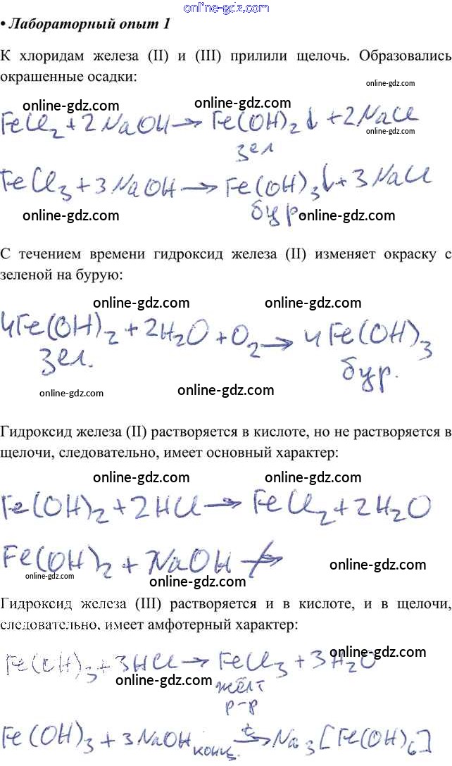 Готовые домашние задания по Химии за 9 класс Учебник Кузнецова, Титова Алгоритм успеха 2019 - Лабораторные опыты §45. Железо и его важнейшие соединения 1