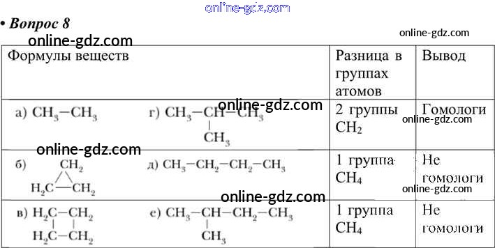 Готовые домашние задания по Химии за 9 класс Учебник Кузнецова, Титова Алгоритм успеха 2019 - Вопросы §46. Возникновение и развитие органической химии — химии соединений углерода 8