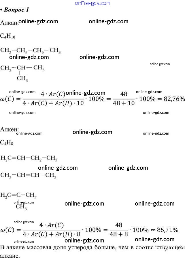 Готовые домашние задания по Химии за 9 класс Учебник Кузнецова, Титова Алгоритм успеха 2019 - Вопросы §49. Непредельные углеводороды этиленового ряда (алкены) 1