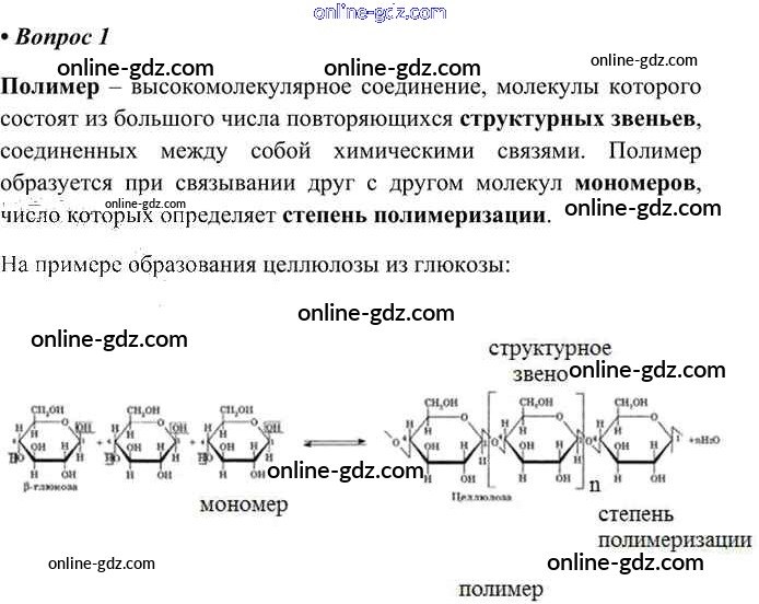 Готовые домашние задания по Химии за 9 класс Учебник Кузнецова, Титова Алгоритм успеха 2019 - Вопросы §56. Полимеры и жизнь 1