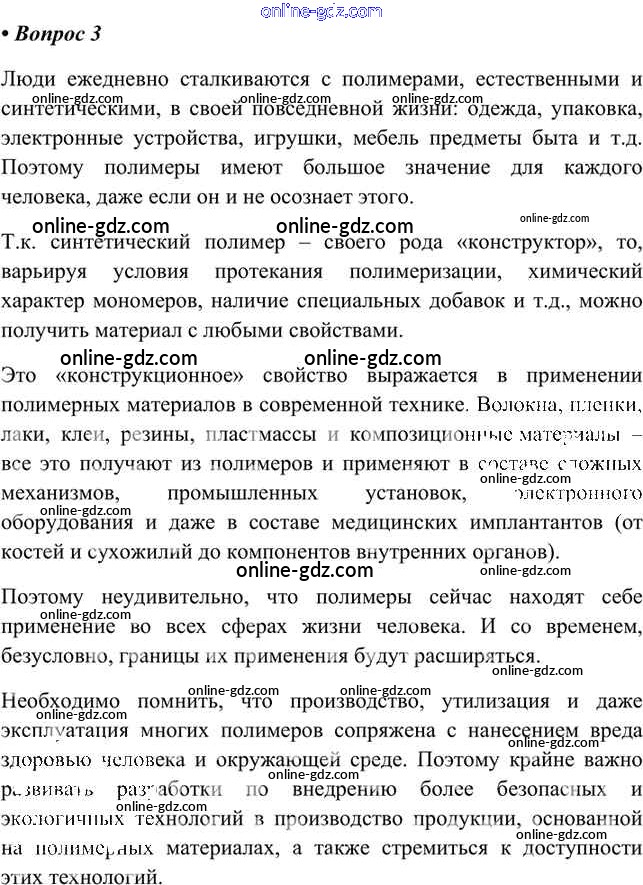 Готовые домашние задания по Химии за 9 класс Учебник Кузнецова, Титова Алгоритм успеха 2019 - Вопросы §56. Полимеры и жизнь 3