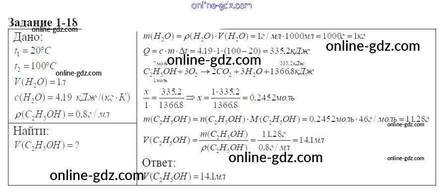 Готовые домашние задания по Химии за 9 класс Задачник Кузнецова, Левкин Алгоритм успеха 2015 - Глава №1. Теоретические основы химических процессов 1-18