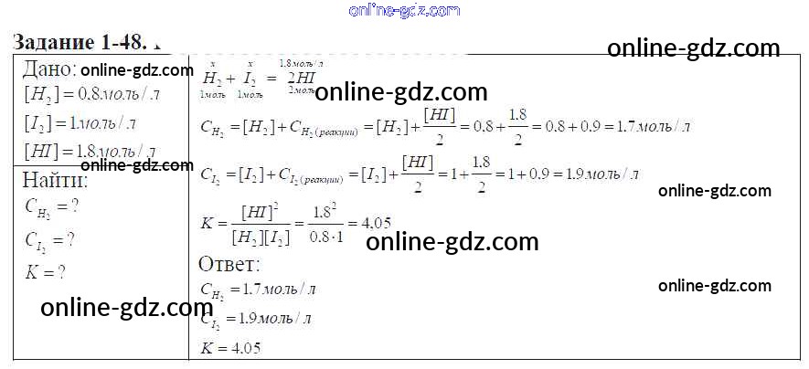 Готовые домашние задания по Химии за 9 класс Задачник Кузнецова, Левкин Алгоритм успеха 2015 - Глава №1. Теоретические основы химических процессов 1-48