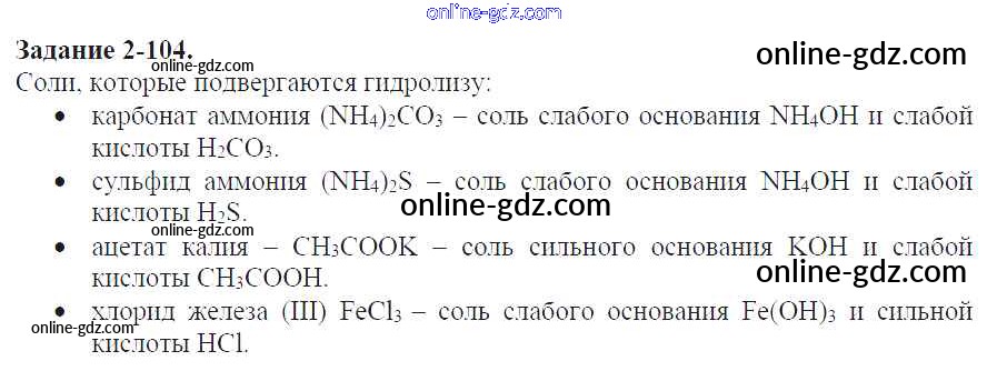 Готовые домашние задания по Химии за 9 класс Задачник Кузнецова, Левкин Алгоритм успеха 2015 - Глава №2. Теория электрической диссоциации 2-104