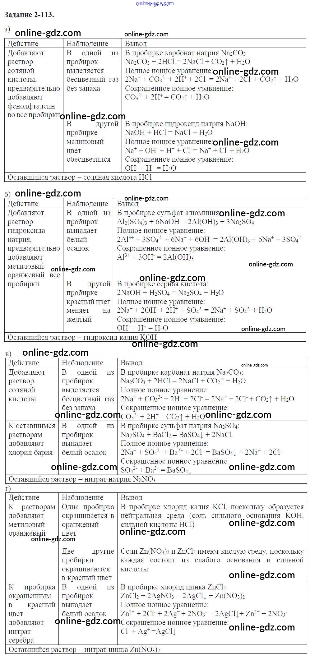 Готовые домашние задания по Химии за 9 класс Задачник Кузнецова, Левкин Алгоритм успеха 2015 - Глава №2. Теория электрической диссоциации 2-113