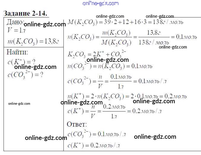 Готовые домашние задания по Химии за 9 класс Задачник Кузнецова, Левкин Алгоритм успеха 2015 - Глава №2. Теория электрической диссоциации 2-14