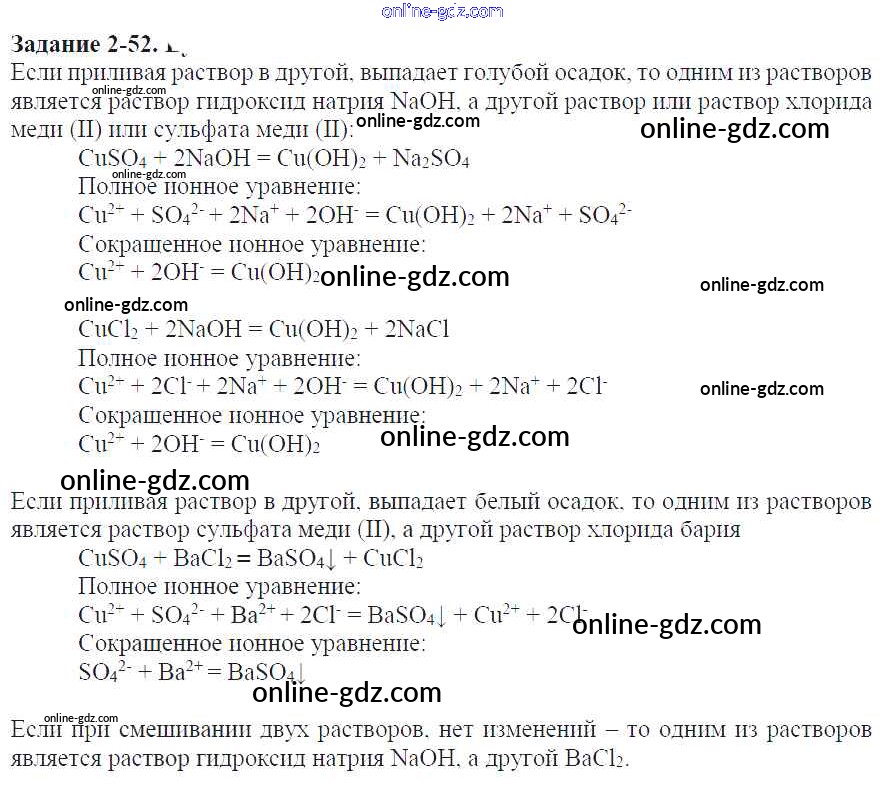 Готовые домашние задания по Химии за 9 класс Задачник Кузнецова, Левкин Алгоритм успеха 2015 - Глава №2. Теория электрической диссоциации 2-52