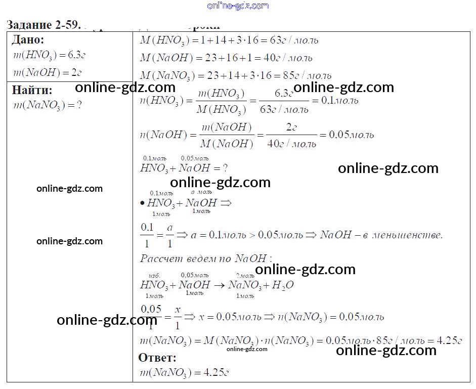 Готовые домашние задания по Химии за 9 класс Задачник Кузнецова, Левкин Алгоритм успеха 2015 - Глава №2. Теория электрической диссоциации 2-59