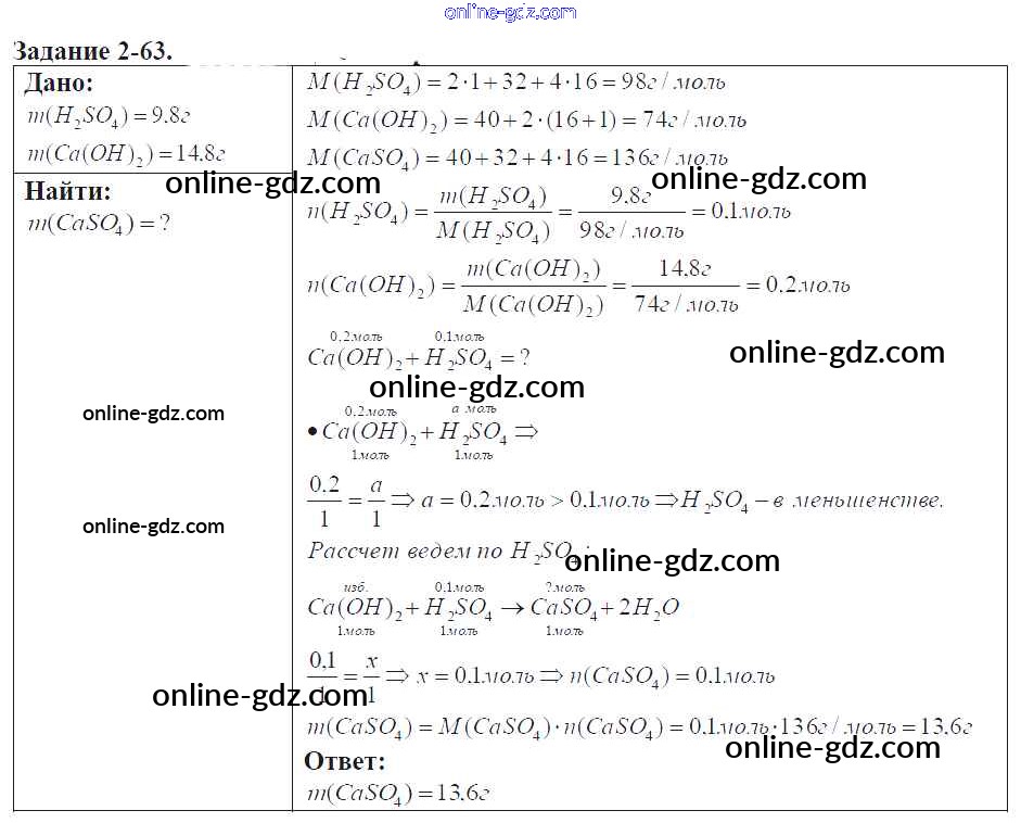 Готовые домашние задания по Химии за 9 класс Задачник Кузнецова, Левкин Алгоритм успеха 2015 - Глава №2. Теория электрической диссоциации 2-63