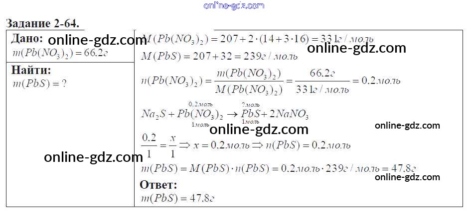 Готовые домашние задания по Химии за 9 класс Задачник Кузнецова, Левкин Алгоритм успеха 2015 - Глава №2. Теория электрической диссоциации 2-64
