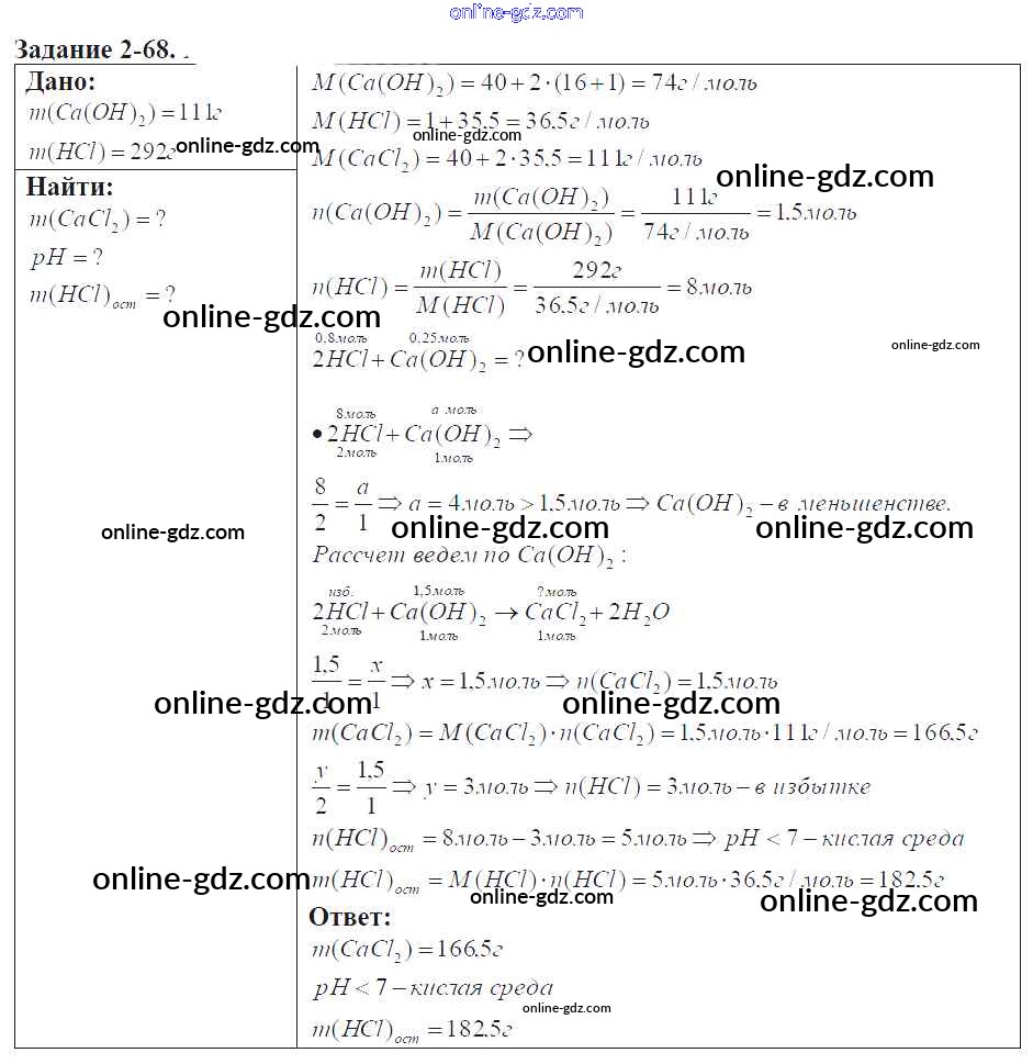 Готовые домашние задания по Химии за 9 класс Задачник Кузнецова, Левкин Алгоритм успеха 2015 - Глава №2. Теория электрической диссоциации 2-68
