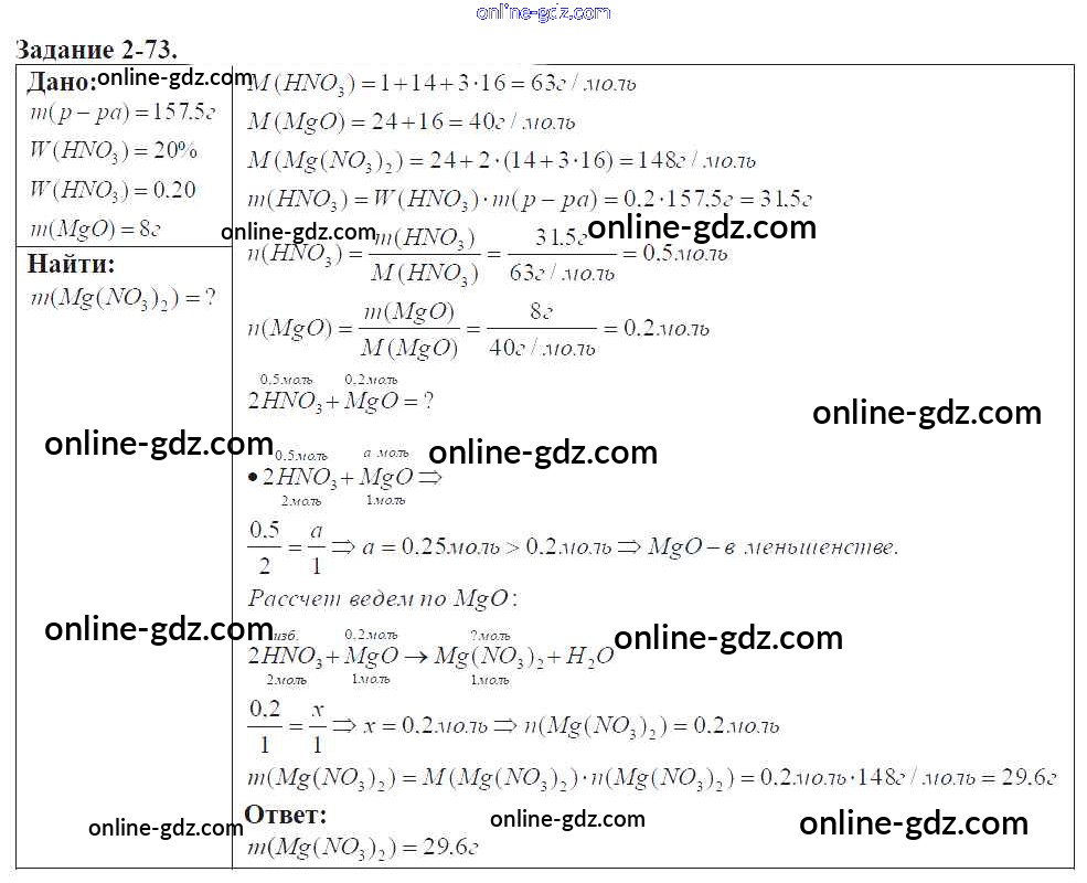 Готовые домашние задания по Химии за 9 класс Задачник Кузнецова, Левкин Алгоритм успеха 2015 - Глава №2. Теория электрической диссоциации 2-73