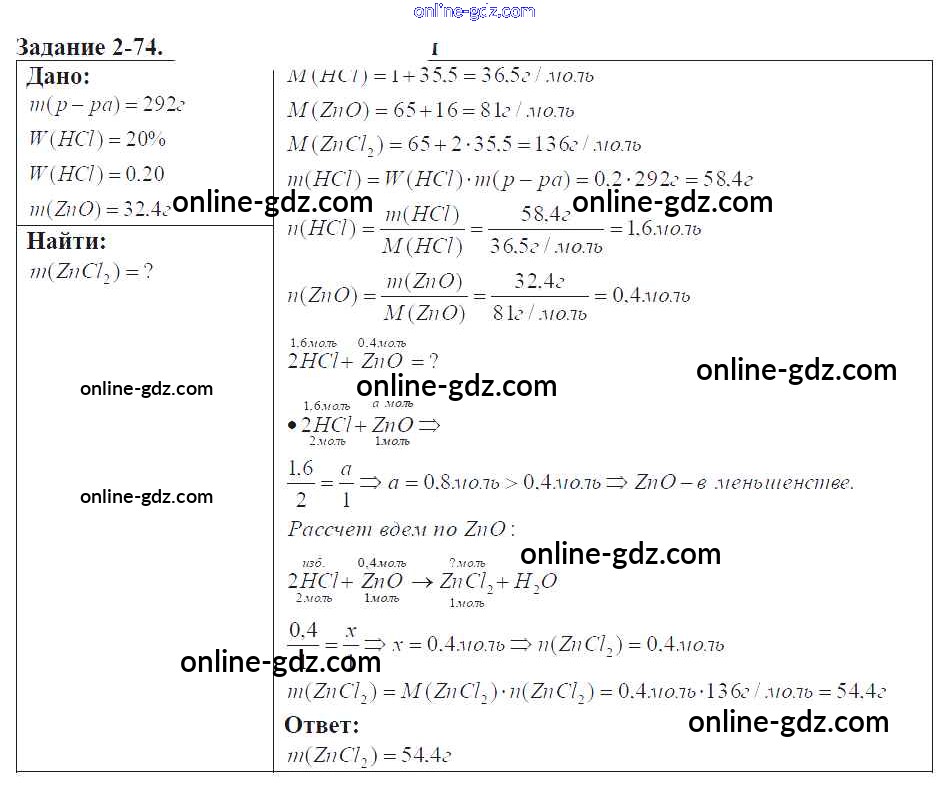 Готовые домашние задания по Химии за 9 класс Задачник Кузнецова, Левкин Алгоритм успеха 2015 - Глава №2. Теория электрической диссоциации 2-74