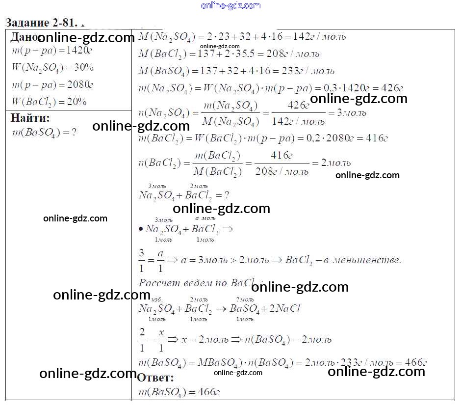 Готовые домашние задания по Химии за 9 класс Задачник Кузнецова, Левкин Алгоритм успеха 2015 - Глава №2. Теория электрической диссоциации 2-81