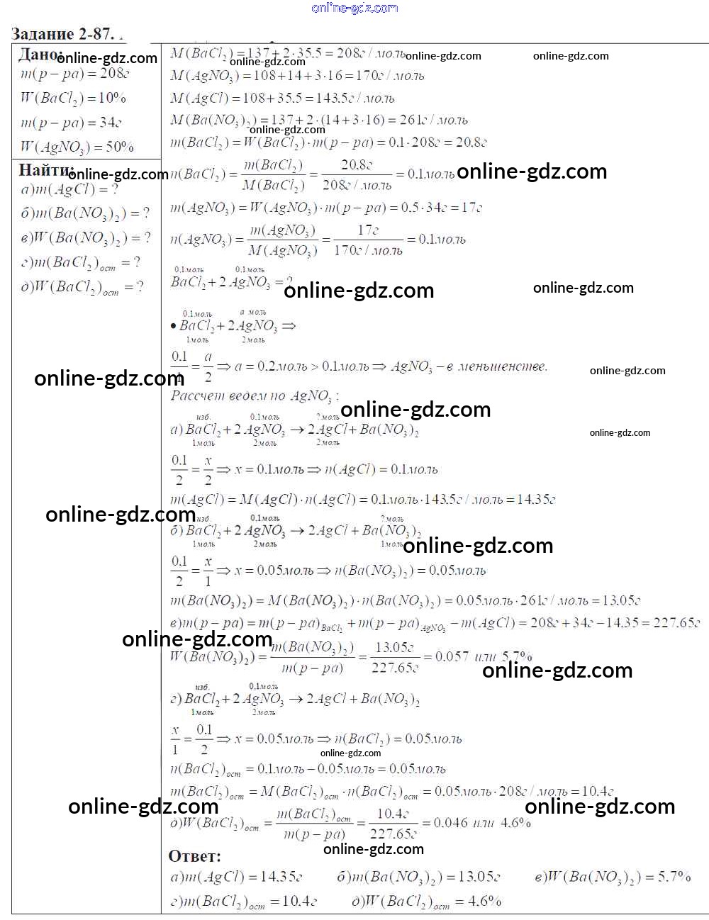 Готовые домашние задания по Химии за 9 класс Задачник Кузнецова, Левкин Алгоритм успеха 2015 - Глава №2. Теория электрической диссоциации 2-87