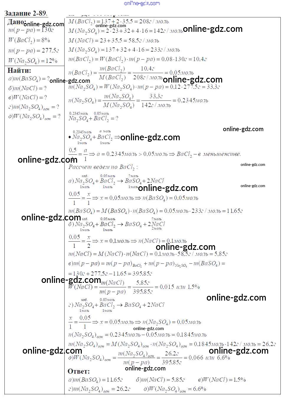 Готовые домашние задания по Химии за 9 класс Задачник Кузнецова, Левкин Алгоритм успеха 2015 - Глава №2. Теория электрической диссоциации 2-89