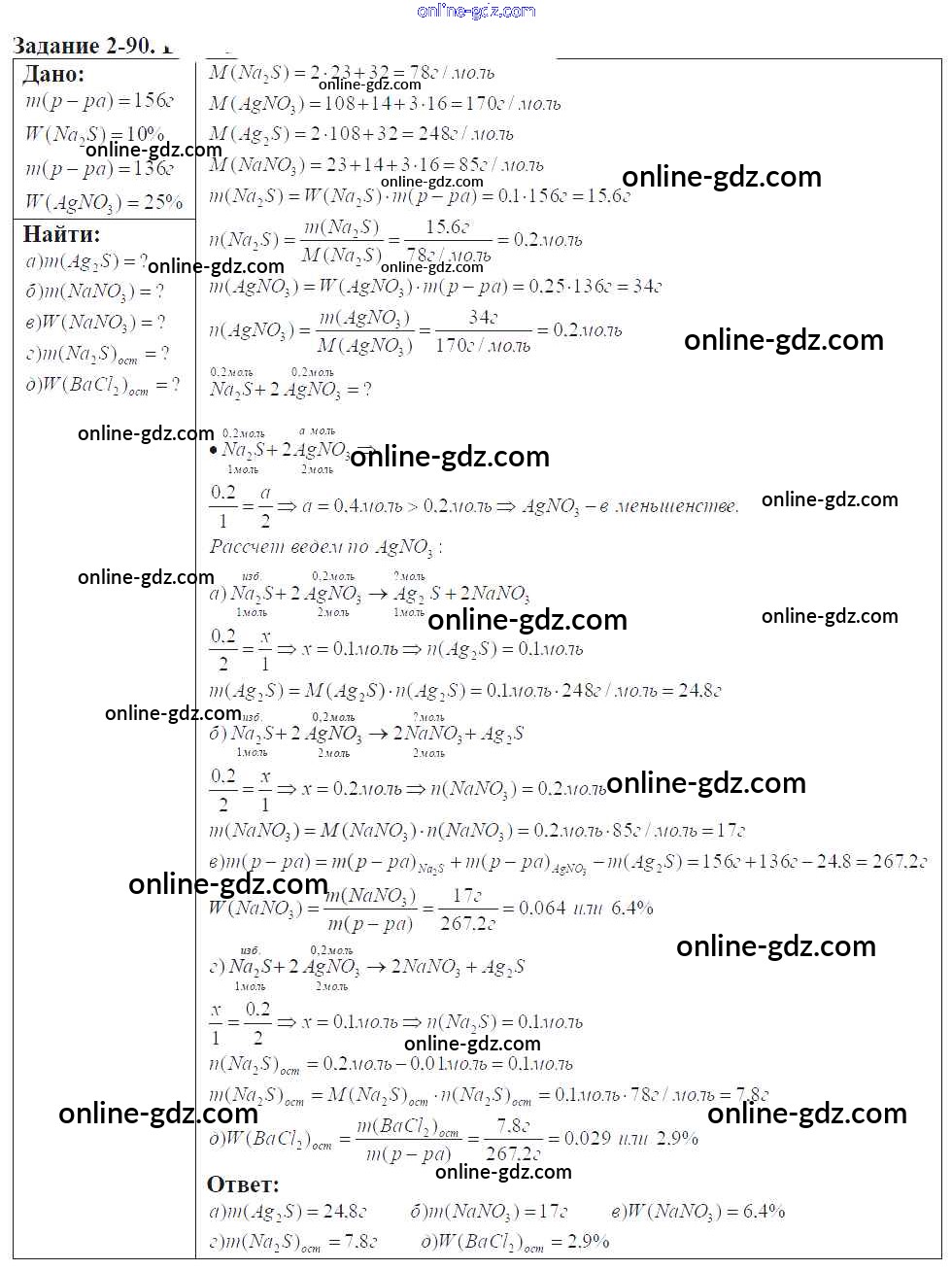 Готовые домашние задания по Химии за 9 класс Задачник Кузнецова, Левкин Алгоритм успеха 2015 - Глава №2. Теория электрической диссоциации 2-90