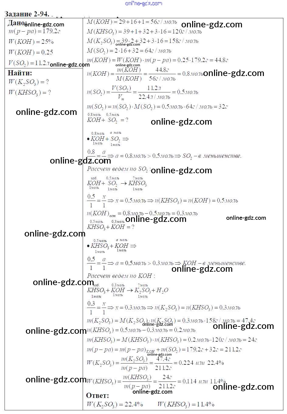 Готовые домашние задания по Химии за 9 класс Задачник Кузнецова, Левкин Алгоритм успеха 2015 - Глава №2. Теория электрической диссоциации 2-94