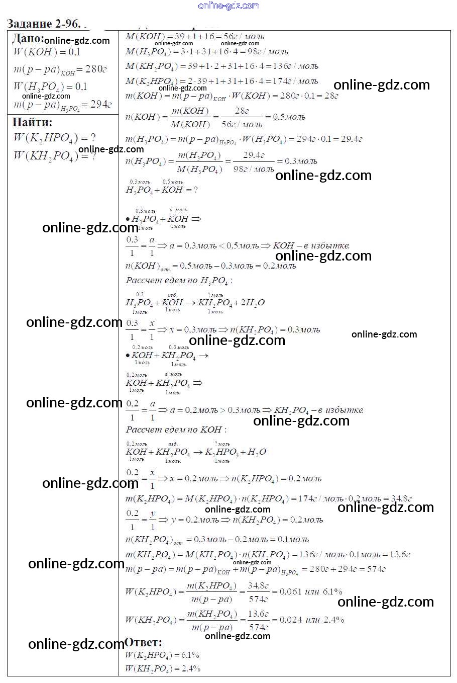 Готовые домашние задания по Химии за 9 класс Задачник Кузнецова, Левкин Алгоритм успеха 2015 - Глава №2. Теория электрической диссоциации 2-96