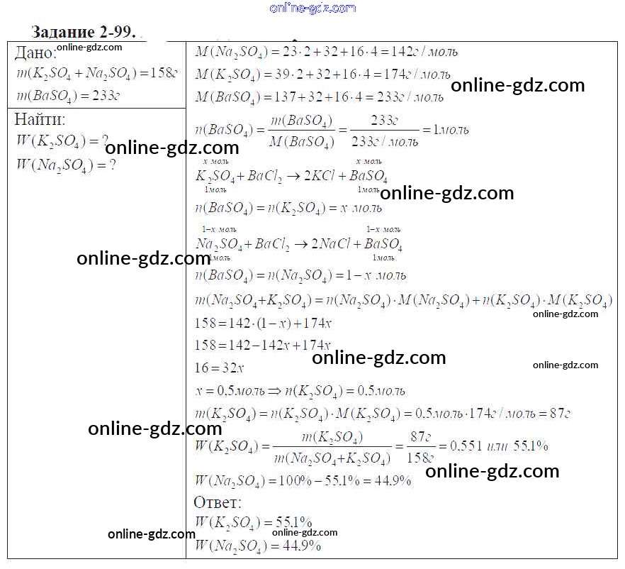 Готовые домашние задания по Химии за 9 класс Задачник Кузнецова, Левкин Алгоритм успеха 2015 - Глава №2. Теория электрической диссоциации 2-99