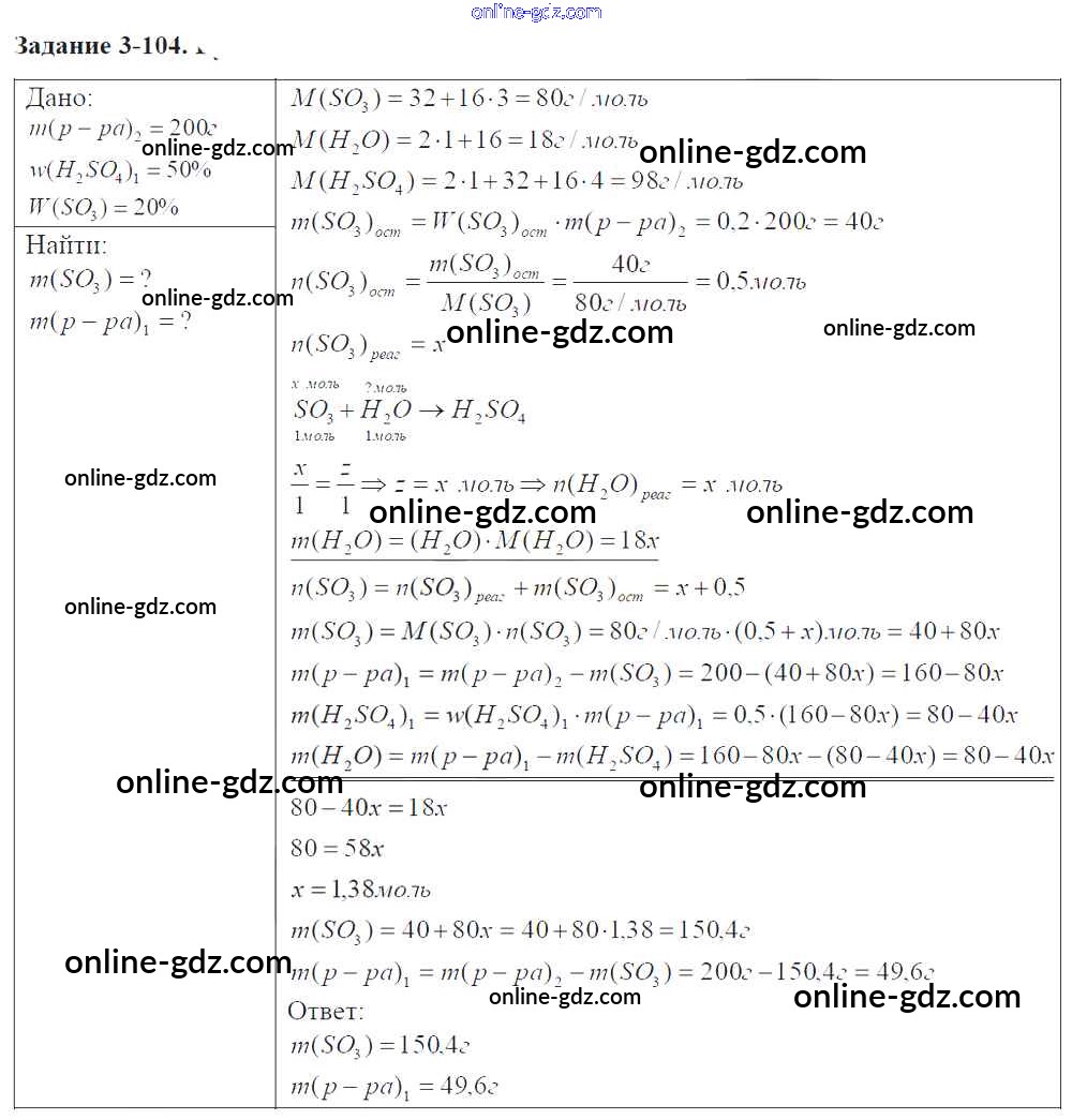 Готовые домашние задания по Химии за 9 класс Задачник Кузнецова, Левкин Алгоритм успеха 2015 - Глава №3. Сера. Соединения серы 3-104