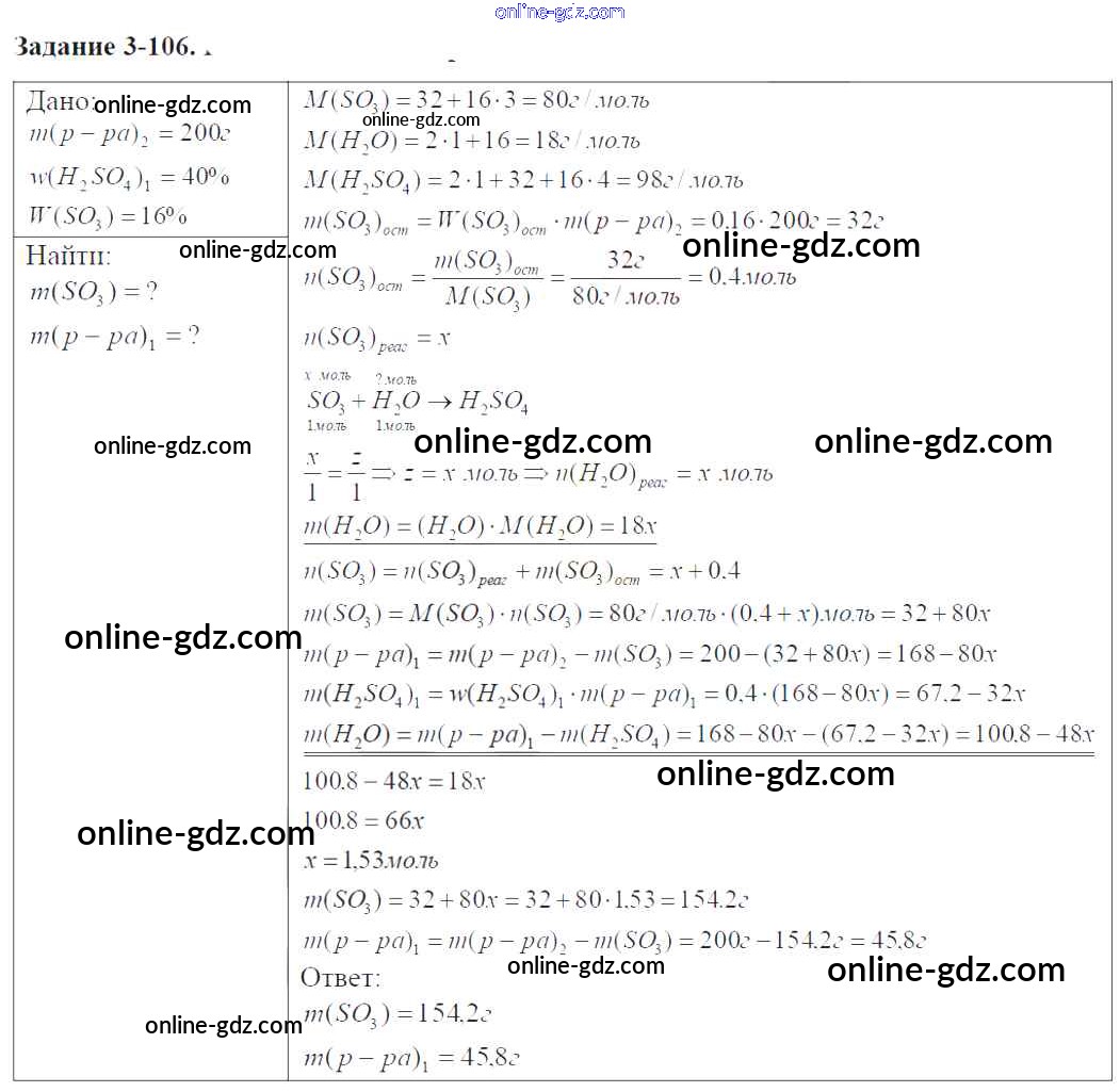 Готовые домашние задания по Химии за 9 класс Задачник Кузнецова, Левкин Алгоритм успеха 2015 - Глава №3. Сера. Соединения серы 3-106