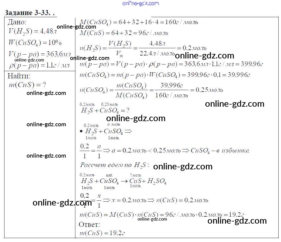 Готовые домашние задания по Химии за 9 класс Задачник Кузнецова, Левкин Алгоритм успеха 2015 - Глава №3. Сера. Соединения серы 3-33