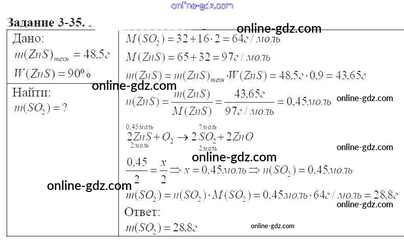 Готовые домашние задания по Химии за 9 класс Задачник Кузнецова, Левкин Алгоритм успеха 2015 - Глава №3. Сера. Соединения серы 3-35