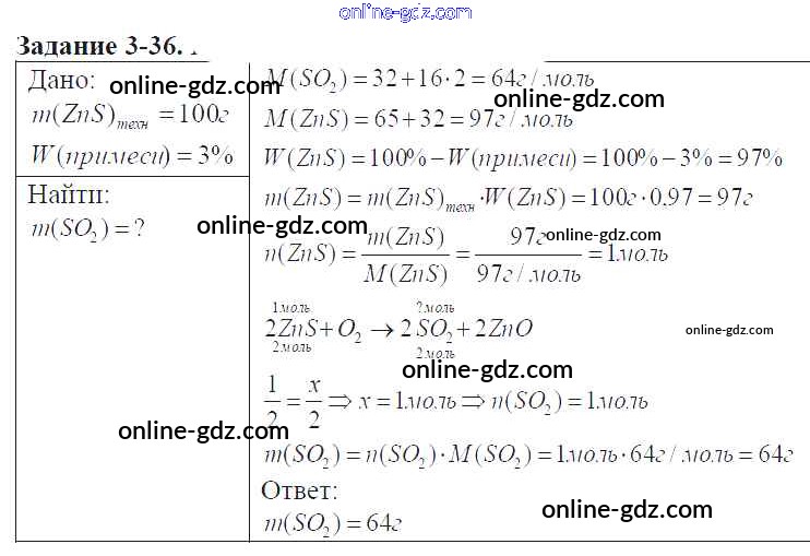Готовые домашние задания по Химии за 9 класс Задачник Кузнецова, Левкин Алгоритм успеха 2015 - Глава №3. Сера. Соединения серы 3-36