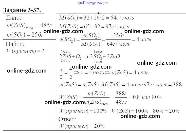 Готовые домашние задания по Химии за 9 класс Задачник Кузнецова, Левкин Алгоритм успеха 2015 - Глава №3. Сера. Соединения серы 3-37